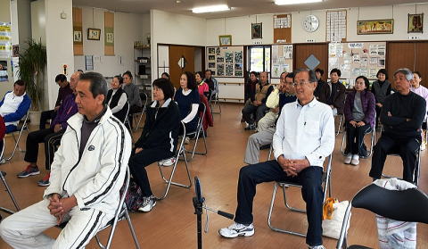 熊本地区では、2014年11月16日元気サポートセンターにて、村上先生(所長)の指導の下シニアの健康体操教室を開催しました。日頃より運動不足を気にしている人、効果的な体操をぜひ身に着けたいと思っている人等、OBと家族それに友達を含め、31名の参加がありました。