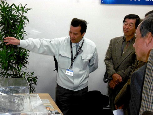 まず人事の宮崎さんよりパワーポイントで菊水工場の近況を説明していただき、その後ショールームに展示された素子と製品の説明を、カテゴリーごとに専任者より説明を受けました。ODDは最終機種となる薄型ブルーレイドライブの製品と、生産状況を前田部長より。インクジェットは、インライン方式の高速印刷用ヘッドユニットの現状と新製品の高密度薄膜ピエゾ素子の開発。インク飛散が非常に少なく高解像度で印刷できるヘッドの説明を渡邊総括より受けました。最後に熱電効果(ペルチェ&ゼーベック効果)素子を特殊加工で強度とフレキシビリティーを兼ね備えた新素子を開発し、高効率で加熱や冷却、温度差発電が可能な商品として仕上げ拡販を推進中と、奥園課長よりお聞きしました。以上の3つのカテゴリーは、菊水工場の精密加工技術とピコ秒レーザー等の特殊設備にて実現したものです。井手新社長との懇談もできました。菊水工場は薄膜形成、精密加工技術を基本として、光ピックアップ・薄膜ピエゾ素子・強度と屈曲性を持ったペルチェ/ゼーベック効果素子を開発製品化し、拡販を図っています。これらの基礎技術を生かして、今後も大いに発展していただきたいと思います。インクジェットヘッドは、将来の*****にもつながる技術。ペルチェ素子は車への応用も期待されています。頑張れPPRD・菊水工場。