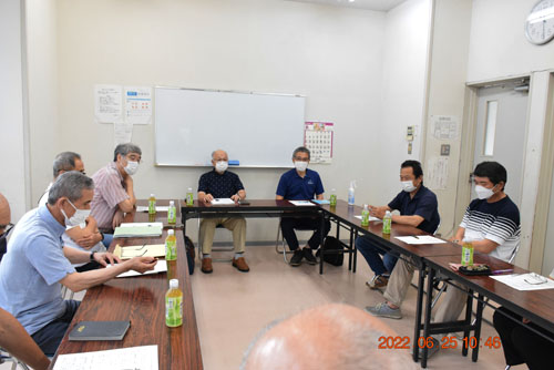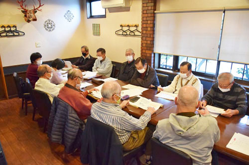 ④2021年度の活動反省を踏まえ、コロナ禍での2022年度活動のあり方を話し合い、感染状況を見ながら開催是非を判断して行く事を確認、退任される委員さんからはコロナ禍で十分なお世話が出来ず申し訳ないとの事でした。