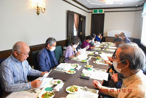 その後、昼食懇談会が行われ、お店の料理に舌鼓を打ちながら、同好会活動の苦労話や裏話が飛び交い、和やかな時が流れました。最後に、2023年度は、コロナ前の活動には及ばないまでも松九会熊本地区活動が充実した活発になることを誓い合い散会となりました。
