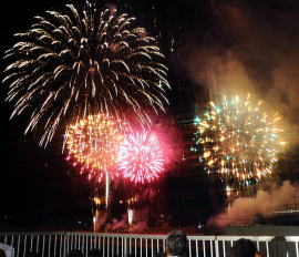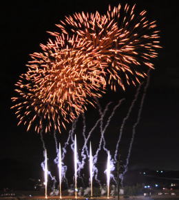 毎年8月、菊池川沿いで玉名花火大会が催されます。毎年1万発以上の花火が打ち上げられ圧巻です。