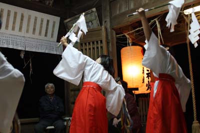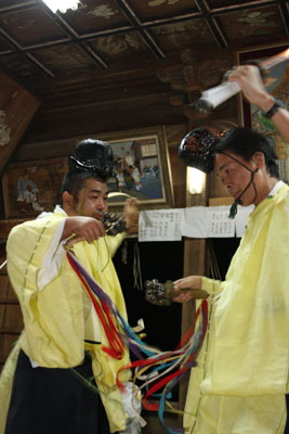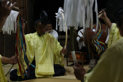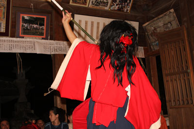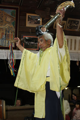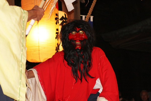 上の写真は、鬼神楽の面を付けられた前田さんです。