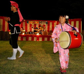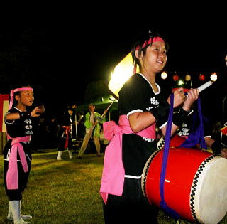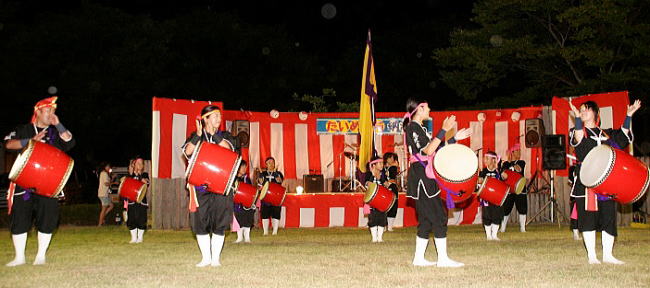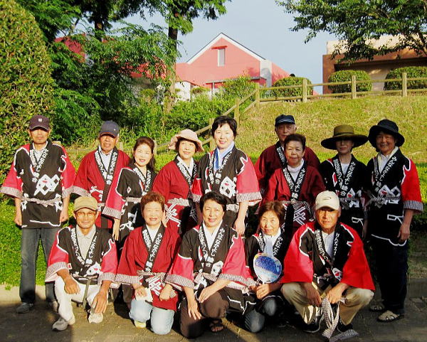 岱明苑では毎年納涼祭を開催し、苑で働く若者達、入園者の方々及び地域の人々との交流を深める活動を続けています。2014年度で20周年ということで、今年もたくさんの出演者を迎え、大いににぎわいました。まちづくり委員会も一般有志を含め総勢20~30名で毎年踊りを披露しています。この会には、当初は3名、現在では5名のパナソニックOBが参加しており、元気で踊りを披露しています。踊りは①岱明音頭、②ノッテケ岱明の2つです。②は軽快なテンポで踊り回る難度の高い踊りで、毎年6月~8月初旬にかけて週2回各2時間(1日あたり10回以上の練習を繰り返し、合計80~100回繰り返し)練習しています。踊りの指導はOGの松野(旧姓山崎)さんで、オリジナルな振り付けを考案し、皆に指導しています。今後も元気で踊り続けることになりそうです。因みにパナOBは、田上さん、植田さん、高石さん、千住さん、松野さん、それに立石です。(H26年参加)