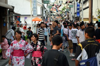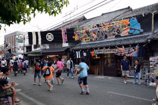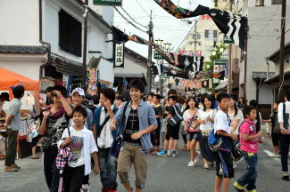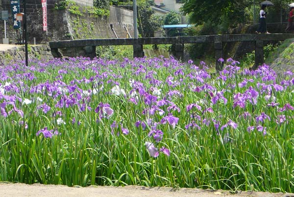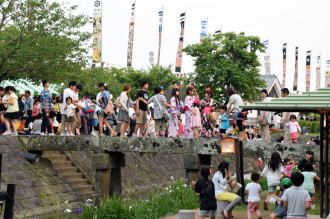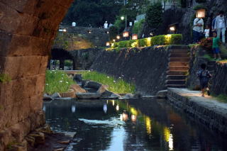毎年6月に1週間以上にわたって開催される玉名浦川花菖蒲祭りは、その昔、菊池川への米などの物資積み出し水路だった浦川を、花菖蒲公園に整備したもので、浦川沿いの立派な石垣の上に、老舗の大きな倉が立ち並んでいる光景は、歴史を感じさせる町並みです。夜ともなれば、花菖蒲の水路沿いに淡い行燈が灯り、そぞろ歩く人達を優しく迎えてくれます。夫婦やカップルでくる方も多いですよ。
