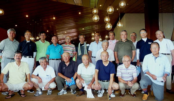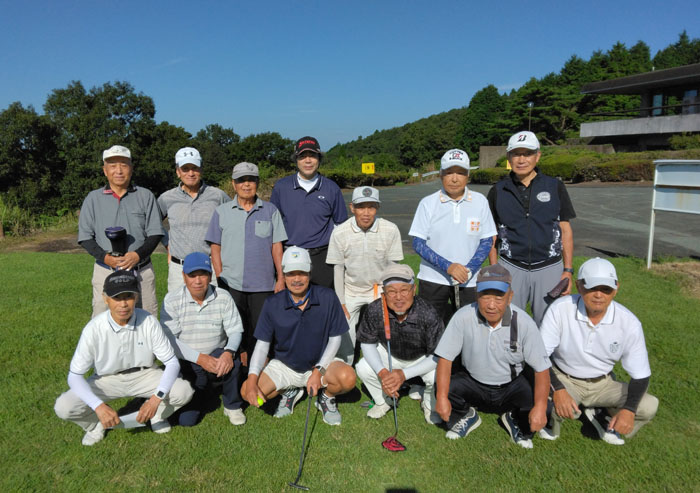 天気は快晴で残暑の厳しい中、参加者15名がアウト、イン同時スタ-トでプレ-をしました。同好会活動も徐々に高齢化が進み、体調不良で参加者の減少傾向にあるなか、80才以上の世話役(岡田、西田)は両者ともに頑張っております。熊本では昨年から継続しているグル-プ交流(松愛会熊本地区)からも1名参加で、楽しい交流を継続しています。当日のコ-スコンデションは、ラフが深く、グリーンは固く、スリ-パット連発で、皆さん苦労していました。