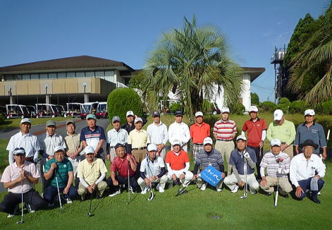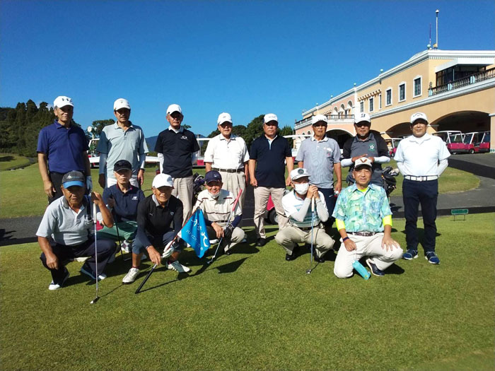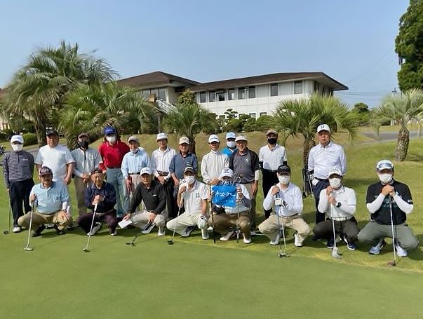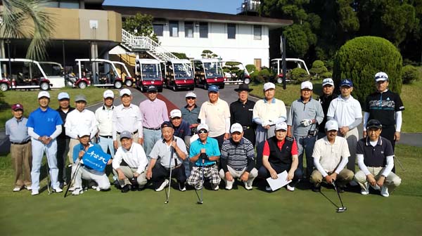 九州ブロック幹事さんの発案で、合同交流ゴルフコンペを2019年10月21日(月)熊本司菊水カントリー倶楽部にて開催しました。佐賀・大分・宮崎・鹿児島・熊本より43名の方に参加頂きました。九州ブロックの方は退職後、交流の場が無く10~20年振りの再会に、懐かしい思い出話があちこちで花開き、意義深い交流の場を持つことが出来たと思います。個人賞は優勝竹下さん(熊本 Net64.4)、2位大野さん(宮崎 Net65.4)、3位岡田さん(熊本 Net68.0)。当日賞は小谷さん(宮崎)が鹿児島チームからお土産の高級焼酎を受賞。団体賞 優勝(北崎・浦本・大石チーム)、2位(西元・井手・川畑・福村チーム)、3位(松枝・加茂・中友・高取チーム)。ニアピン賞(前田・川畑・川崎・竹下・井手・前田・田中・浦本)さん。全員に荒尾市特産の新高梨をお土産に渡し散会しましたが、多くの皆さんから継続の要望が出ていました。