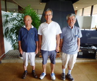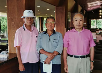コンペ当日は、熱中症警戒アラートが発表され、快晴の酷暑の中でのプレーでした。特に全員高齢につき熱中症が懸念されるため、開会式では念入りな注意を促してのスタートでした。結果、一人のリタイア者もなく、大過なく成功裡に終える事ができました。