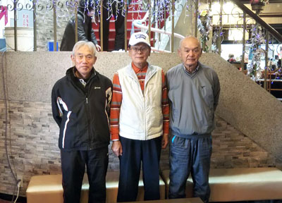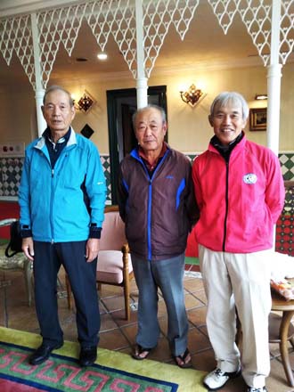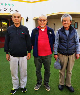 朝はマイナス2度でしたがすぐに暖かくなり、天気は最高のゴルフ日和となりました。ここGCは距離は長くないのですが上りの傾斜がきつい所が多くあり、ナイスショットが50~70ヤードもコロコロと戻ってくるアンラッキーが出やすい難コースとなっています。その原因は芝が枯れていること、カートでコース内を走るため芝を倒した上、地面を固くしている事があります。その難コースで優勝されたのは友永さん、準優勝は城戸さん、3位は植村さんでした。