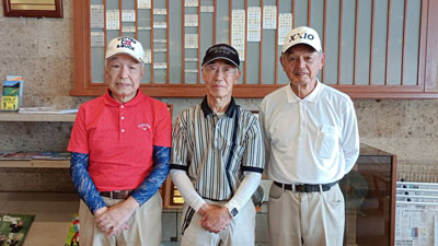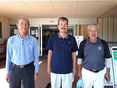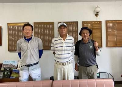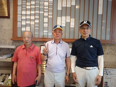 優勝は、Net66で緒方さんでした。2位はNet67.4の岡田さん、3位はNet68の手島さんでした。上位3名共に、堅実なプレイをされるグランドシルバー(70歳越え)の皆さんでした。ベストグロスは、若手の前田(成)さんで、スコア81でした。ニアピン賞は、水上さん、福村さん、林さん、西村さん、田上さんがそれぞれゲット。次回は9月後半に開催ということで散会しました。