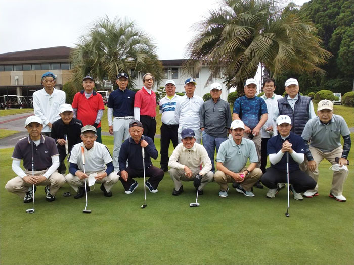 特筆すべきことは、世話役を岡田(84才)、西田(81才)が担当することで、老人も頑張ってお世話を務めます。熊本では昨年から継続しているグル-プ交流(松愛会熊本地区)からも3名参加いただき、和気あいあいと楽しい交流が出来ました。当日の天気は黄砂の影響か薄曇りでしたが、良いゴルフ日和でした。