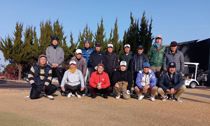 当日は寒さが厳しい中、有明海沖に聳え立つ雲仙岳が雪に覆われているのをバックに記念写真を撮り、岡田長老世話役の挨拶で、天気も快晴の予報通りのゴルフ日和となりホワイトコ-スから5組(19名)がスタ-ト、1年前から交流している松愛会熊本から代表の(今関さん)も上位を狙って元気にスタ-ト(結果は4位入賞)、優勝は東さん(Net67.0)、準優勝は浦本さん(Net 71.0)、3位 は城戸さん(Net 71.4)となりました。