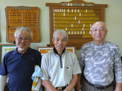 先々週までは35℃を超す酷暑、先週は雨を予想させる連続する傘マークの天気予報、今週は安心できる天気予報が出そろい、さらに朝夕の季節並みの涼しさなど正にゴルフの季節になったと思いましたが、日中はよくこんな中でやれるもんだと思うほどのラウンドでした。暑さに耐え優勝されたのは千住さん、準優勝は上野さん、3位は城戸さんでした。