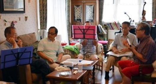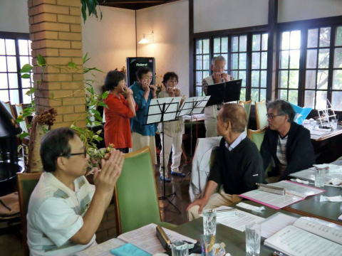 音楽を楽しむ会“おタマナじゃくし”が発足後8か月余りになり、毎月第2、第4水曜日の練習も定着し、この日は9月11日の熊本地区懇親会に向けての準備を進めています。9月度は懇親会に合わせ、9/2と9/7に練習日を繰り上げ、曲目も絞り練習の密度をアップしています。更に今月から野尻さんが会員になられメンバーは7名となりました。今後は好きな音楽をどんどんマスターしていきたいと思います。