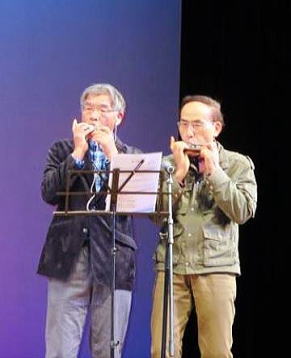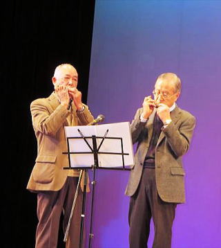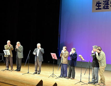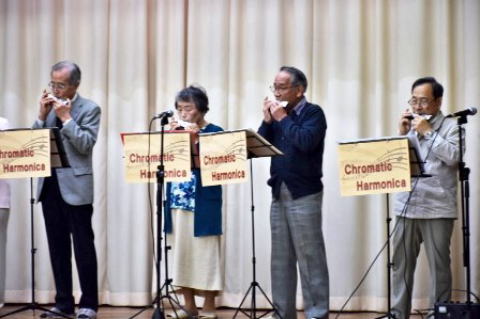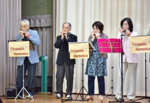公民館生涯学習フェスティバルでハーモニカ演奏