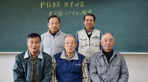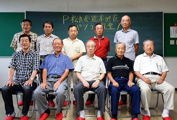 課題の「玉名市の人口構成表」をデータベースとして作成し、各種グラフ類から表現に適した 図を選択し仕上げます。エクセルも次々にバージョンアップするため、戸惑いも多いのが現状ですが、さすが頑張り屋の九松の皆さん、一歩も引かず取り組みました。難問とは裏腹に明るさ溢れるパソコン教室でした。