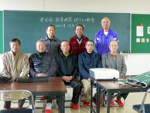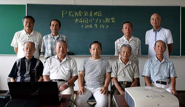 平成28年6月16日、第1回熊本地区パソコン教室を、玉名市勤労青少年ホーム研修室にて、講師2名と参加者8名で開催しました。正講師の大石さんが業務多忙の為、シニア及び初心者パソコン教室講師経験者の、野尻さんと立石が代役で1年間担当する事になりました。基本は楽しく気張らずに進めていくこととし、エクセル・ワードによる年賀状や名刺の作成、それに関係する写真やイラストの取り込みと加工、集計のできる出席簿の作成方法等を学習していきます。