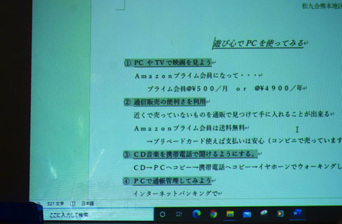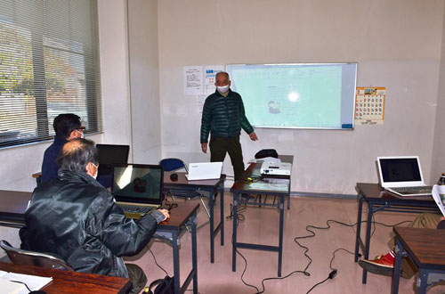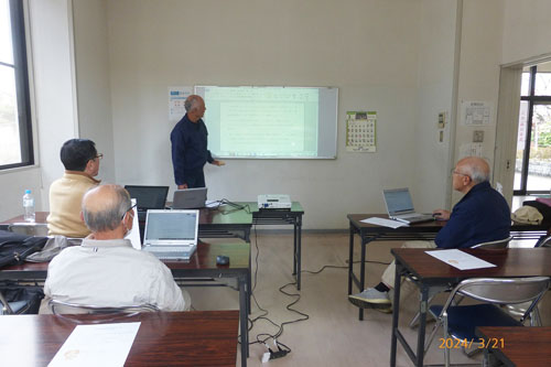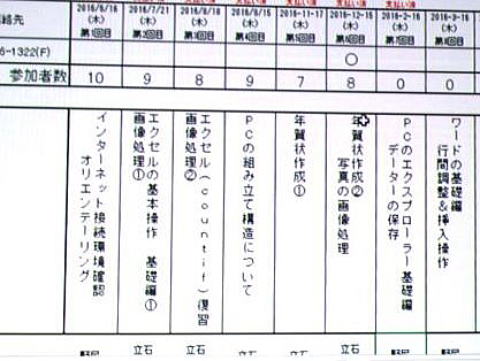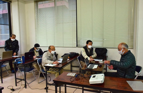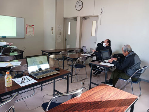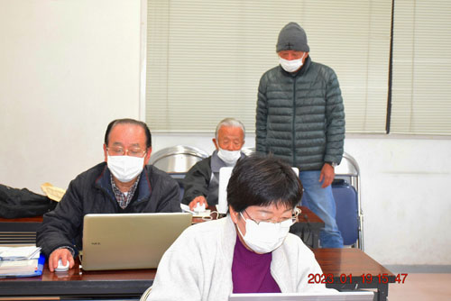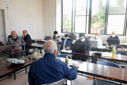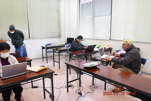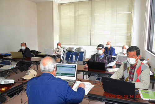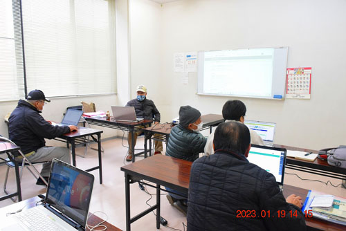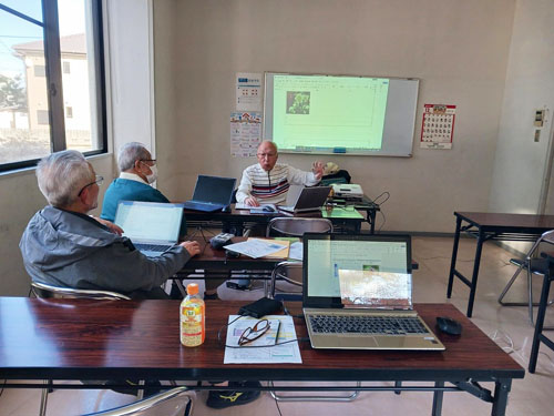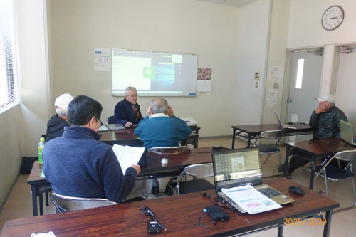 プロジェクタースクリーンの代わりに襖を利用して、フォルダーの作成からデーター関係の記録と整理の仕方、エクセルでのグラフ作成等など前回までの復習を兼ねて学びました。和気あいあいの中にも質問が飛び交い充実した一日でした。次回は3月第3木曜日に開催の予定です。