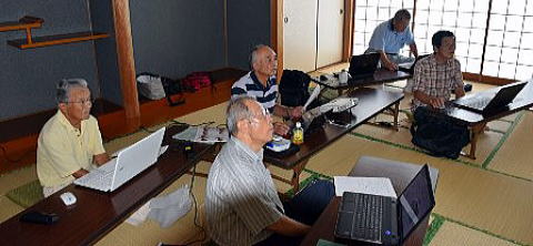 第12回目は和室での開催となりました。座っての受講は少々きつかったのではないでしょうか。さて前々回、前回とも参加が少なかったので、継続してインターネット検索とシニアネットの紹介等を学習しました。しかし携帯の通信容量オーバーのADSLよりも通信速度が落ち込んでいましたので、思うように各種確認をすることが出来ませんでした。参加者は6名でした。