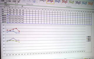 さて今回は体重や体脂肪、血圧・脈拍等の自分自身の健康のバロメーターとなる数値をエクセルのグラフを活用して管理する方法を学びました。講師の野尻さん、アドバイザーの大石さんの説明を聞きながら、各自グラフを作成しY軸の数値を変えたりして、変化に気づきやすいグラフの作成手順を学習しました。その他に家計簿や売上高の推移グラフ等にもトライしました。次回は、11月で年賀状シーズンの為住所書きなどは既存ソフトに任せ、年賀状本文をワードを活用して、作成する方法を学習します。ワードでも写真やイラスト、文例をうまく使い自分らしさを出せる年賀状にトライします。次回は11月16日です。参加者は6名でした。