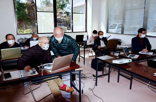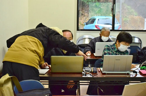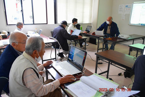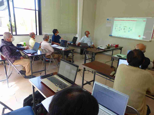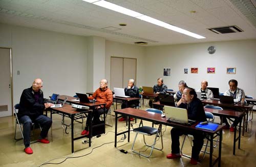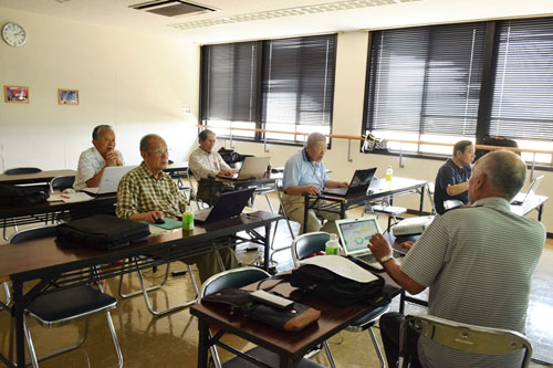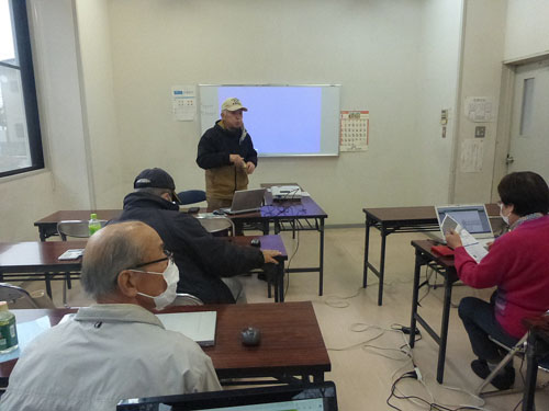 本日は初回でもあり、Wi-fiの設定方法からスタートしました。OSがWindows-7、8.1、10、PCメーカーも多数の為、設定方法も微妙に異なり少々手間取りましたが、うまくインターネット環境が構築でき、皆さんホットしたようでした。講義はどのようなことに活用できるかの全体的な説明が主でしたが、今後は毎月第3木曜日の1時半~3時半の予定で、具体的な課題に取り組んでいく予定です。