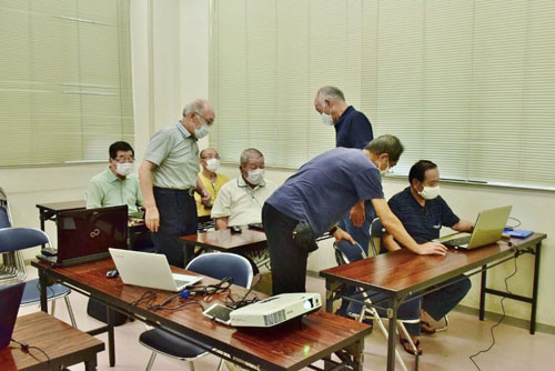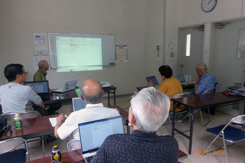 第21回熊本地区パソコン教室が、7月19日に玉名市勤労青少年ホームで開催され、講師の野尻さんを含め9名が参加しました。