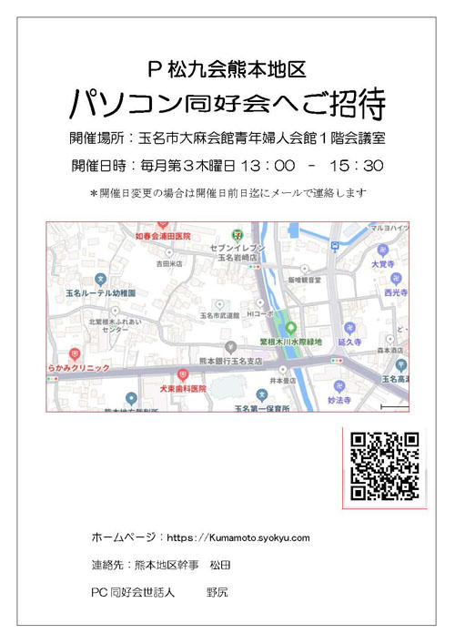 11回目のパソコン教室を、玉名市勤労青少年ホーム2階の会議室にて開催しました。今回は初代講師の大石さんが参加してくれました。本日は松熊会ゴルフコンペと重なり、参加者は6名でしたが、インターネット検索関連を含め色々な質問に野尻さんと大石さんが対応し、充実した時間となりました。