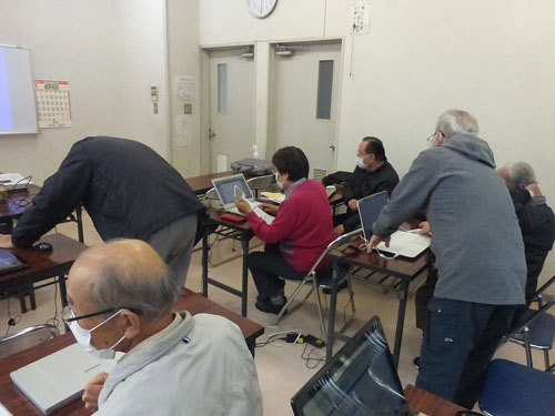 急に平年気温まで下がった寒さ、会場の暖房を入れ暖かくして今年度8回目のパソコン教室を開講いたしました。