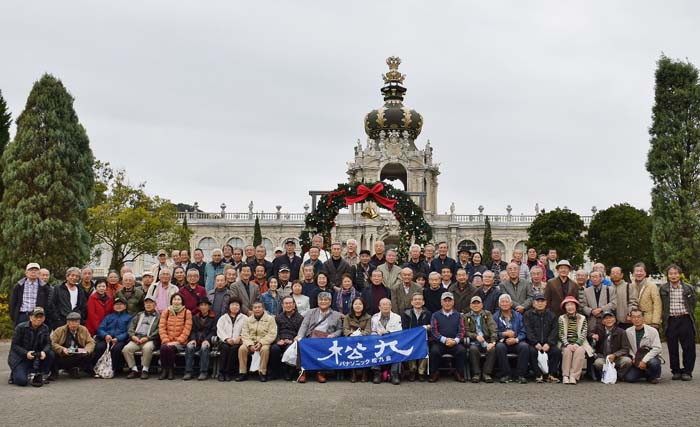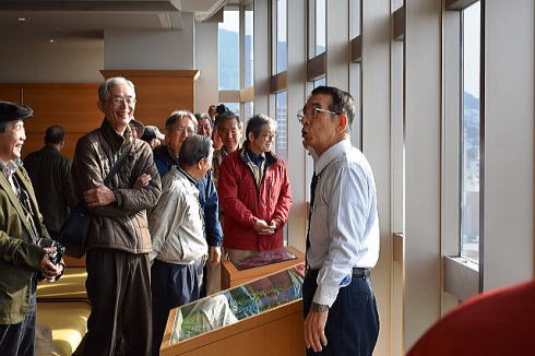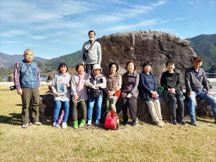 2018年11月28日、松九会本部企画の工場見学に地区間交流を兼ね熊本地区から17名が参加しました。目的地は昭和52年九重山地に建 設された、九州電力八丁原地熱発電所の見学でした。福岡地区の皆さんとは現地で合流し、8万世帯の電力を賄つている発電所の説明と壮大なタービンを見学し、昼食を共にした後お別れしました。熊本グループは、その後計画していた竹田城址にある岡城跡と九重ワイナリー見学に向かい、岡城では本丸まで徒歩20分掛かることから、歩こう会の行事を兼ねて全員で滝廉太郎の銅像が置かれている本丸跡までを散策す る事にしました。岡城は明治7年に取り壊され城郭はありませんが、熊本城を凌ぐ石垣の多さとその高さには驚異を隠せず、築城の苦労を充 分に推し量ることが出来る佇まいでした。九重ワイナリーでは、試飲を試みてそれぞれお気に入りのワインを購入し帰路に着きました。