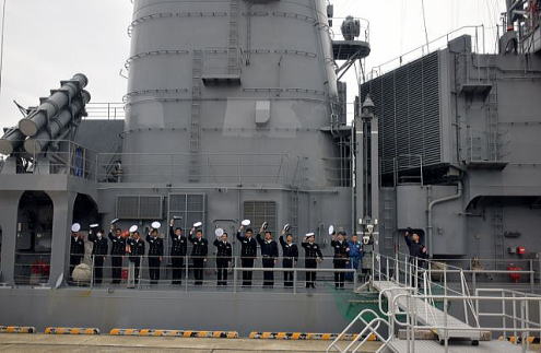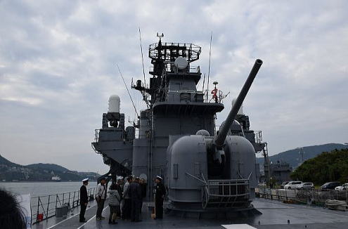 昼食は中華バイキング、次に海上自衛隊佐世保基地内へ移動。帰港中のミサイル護衛艦「しまかぜ」4650t、乗員240名に乗船。艦長さんから歓迎の挨拶と紹介、護衛艦の任務、性能、特徴等をスクリーンで説明を受けました。更に艦上でミサイルと主砲の操作実演、詳細な説明を聞きながら、艦内一時間以上の見学と写真撮影もできました。自衛官が人知れず日夜の厳しい訓練と日本の防衛任務に就いていると知りました。帰りは隊員が一列に並び帽子を振って見送ってくれました。最後に梅ヶ枝酒造を見学、気に入った酒を土産に帰路へ。今回の社会見学会は大変楽しく、意義ある勉強会になりました。