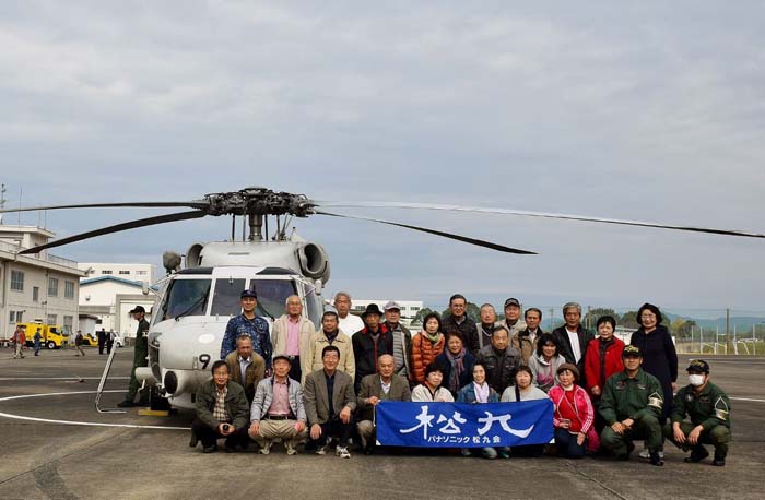 当日熊本地区より24名、8時にいつもの健康保険センターより出発し、一路長崎県大村市の航空自衛隊大村基地に向かった。今回は女性の参加も多く、バスの中は華やいだ雰囲気でにぎやかだ。途中福岡方面からの会員66名と合流し、バス3台90名の大団体となった。車窓からの眺めを楽しみながら大村基地に到着。飾りっ気のない体育館で基地の歴史と概要を、プロジェクターを使い説明して頂いた。売店ではかの有名な海自カレーを皆さん買い込んでいた。それから配備されている哨戒ヘリSH-60J/60K、更に救難ヘリUH-60J、それぞれの機能と活動状況の説明を受け、実機をバックに記念撮影となった。更にバスに乗り基地内を見学、海上に位置する長崎空港も垣間見えた。その後ポーセリングパーク内のレストランで昼食、再現されたツヴィンガー宮殿前で記念撮影。最後に九州陶磁文化館を見学、大変充実した一日だった。