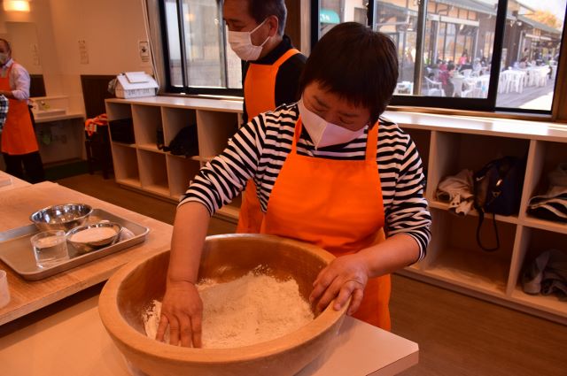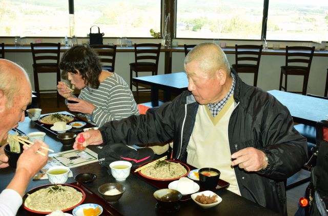 次に南阿蘇へ移動しそば打ち体験に挑戦。殆んどが初体験でしたが、指導が上手で楽しくそば打ちが出来、最後に自作のそばを美味しく頂きました。途中俵山展望所に立ち寄り、カルデラ・阿蘇五岳の全貌を堪能・余韻に浸り、なぞなぞクイズで盛り上がりながら帰路に着きました。