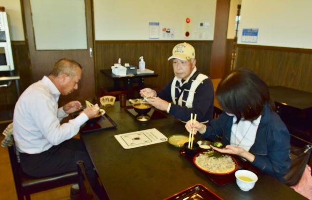 その後、昼食会(食事処おかむら)へ移動し、美味しい食事を取りながら、今回企画の反省・次回企画提案・参加者をアップさせる意見を交換しながらおしゃべりに夢中になったひと時でした。次回は是非多くの方の参加をお待ちします。