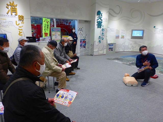 当日は、本来、熊本地区年末懇親会を企画していましたが、 コロナ禍にてやむなく中止、代替案として防災研修会を実施したものです。玉名市内にある「ありあけ防災館」は、熊本県内2番目のパネル展示や映像、VR体験などのコンテンツを通じて、有明地区の災害リスクや防災対策等を学べる体験型の防災学習施設です。 普段は知ることのない消防の裏側を紹介するコーナーや、迫力満点のハザードシアター・実際の災害発生時を想定したシュミレータにより、防火・防災についての知識を深め意識を高めることが出来ました。119番通報体験・初期消火実演・煙避難体験・救命講習(心肺蘇生法・AED等)と充実した研修会でした。東日本震災・熊本地震・昨今の大雨被害体験を踏まえ、自分の命や家族の命が守れるように、日頃の備えが大事であることを意識した一日でした。