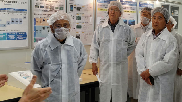 工程見学はSP-CAP、POSCAP(導電性高分子キャパシタ部品)を約1時間実施しました。用途はICT端末・産業・車載用のノイズソリューション部品のようです。職場改善事例、環境改善事例、地域ボランテイア活動を積極的に実施されている状況が伺えました。熊本創生の樹~Well-Being活動が印象的でした。