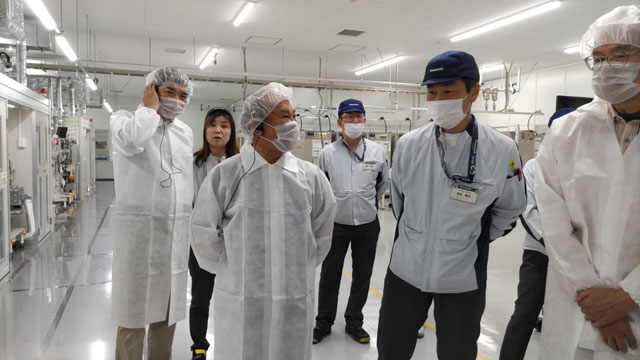 責任者の豊福さん(旧第3出身)よりプレゼンがあり、拠点歴史では1980年磁気ヘッド事業、1994年光ディスク事業、1995年電話関連事業、2006年ブルーレイドライブ、2019年Pana合併によりキャパシタ事業の商品展開、人員面ではPana四国、三洋さんの人材交流があったようです。今年2月津賀会長・坂本社長の視察があり激励を受けたそうです。