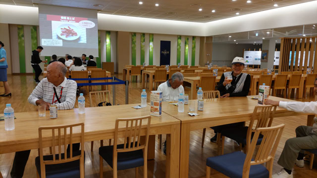 サントリーでは70分(製造工程見学+試飲コース)、九州工場では『ザ・プレミアム・モルツ』と『サントリー天然水<阿蘇>』を生産されています。プレゼンでこだわりの素材や製法の(ポイントは麦芽・ホップ・天然水)説明を受けラインを見学しました。24H300名体制ですが、遠隔モニター監視の為、人の姿は全く見られませんでした。最後に楽しみな試飲タイムでしたが、運転手3名は我慢して昼食会場へ移動しました。