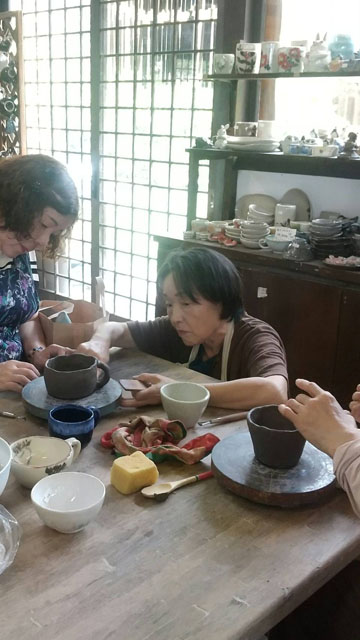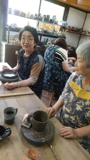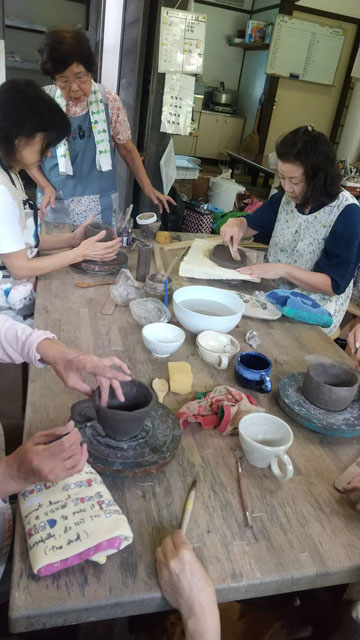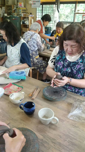 参加者は、ほぼ全員が初めての体験で、先生の指導の下、粘土をこねこねしてそれぞれの形に仕上げながらワイワイ賑やかな雰囲気でした、後半になると次第に声が聞こえなくなり真剣に作品づくりに没頭されていました。窯で焼いた後の自作品を観るのが今後の楽しみです。