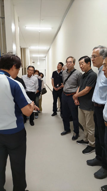 先着25名を募集しましたがコロナ第8波の影響によるキャンセルにて最終11名の参加でした。熊本は2年前の球磨川豪雨災害を経験しましたのでダム見学を決めた経緯です。竜門ダムの概要ですが複合形式(コンクリート部・ロックフィル部)、高さ99.5m、総貯水量4250万㎡(福岡ドーム約40杯)、流域面積996k㎡12市町村をカバー、1964年調査開始から建設完了迄30年、稼働開始から20周年を迎えたようです。プレゼンを受け内部の監査廊は約1km、途中には監視カメラ・センサーがあり、また、上下600段の階段もあり運動不足の方は説明を聞くより、ついていくのが必死の様子でした。